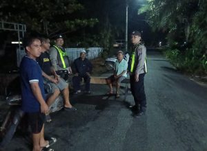 Terlihat saat patroli malam, anggota piket Polsek Mantangai melakukan patroli di warung warung kecil dan pemukiman penduduk Kecamatan Mantangai, Kamis (16/04/2026) Malam.