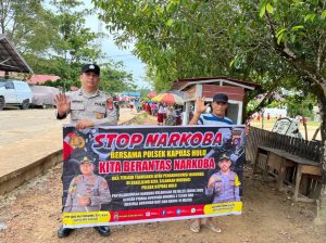 Tribratanews.kalteng.polri.go.id-Kapuas Hulu-Dalam upaya meningkatkan pencegahan dan penanggulangan penyalahgunaan narkoba, personel Polsek Kapuas Hulu Polres Kapuas jajaran Polda Kalteng Aipda Simpang L. S. Purba dan Bripda Wayan Aditya rutin melaksanakan imbauan melalui media spanduk bertuliskan “Stop Narkoba” di beberapa lokasi yang dianggap rawan tindak pidana narkoba. Bertempat di Desa Sei Hanyo Kecamatan Kapuas Hulu Kapuas Hulu Kabupaten Kapuas Provinsi Kalimantan Tengah, Sabtu (18/04/2026) pukul 14.50 WIB