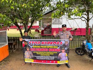 Tribratanews.kalteng.polri.go.id-Kapuas Hulu-Dalam upaya pemberantasan penyakit masyarakat terutama penyalahgunaan narkoba, Polsek Kapuas Hulu Polres Kapuas Polda Kalteng melakukan imbauan melalui media spanduk peringatan keras bagi pengedar dan pemakai narkoba oleh personel Polsek Kapuas Hulu Aipda Imanuel P. Nadeak dan Brigpol A. Pasaribu bertempat di Desa Sei Hanyo Kecamatan Kapuas Hulu Kabupaten Kapuas Prov. Kalteng, Minggu (19/04/2026) pukul 12.00 Wib.