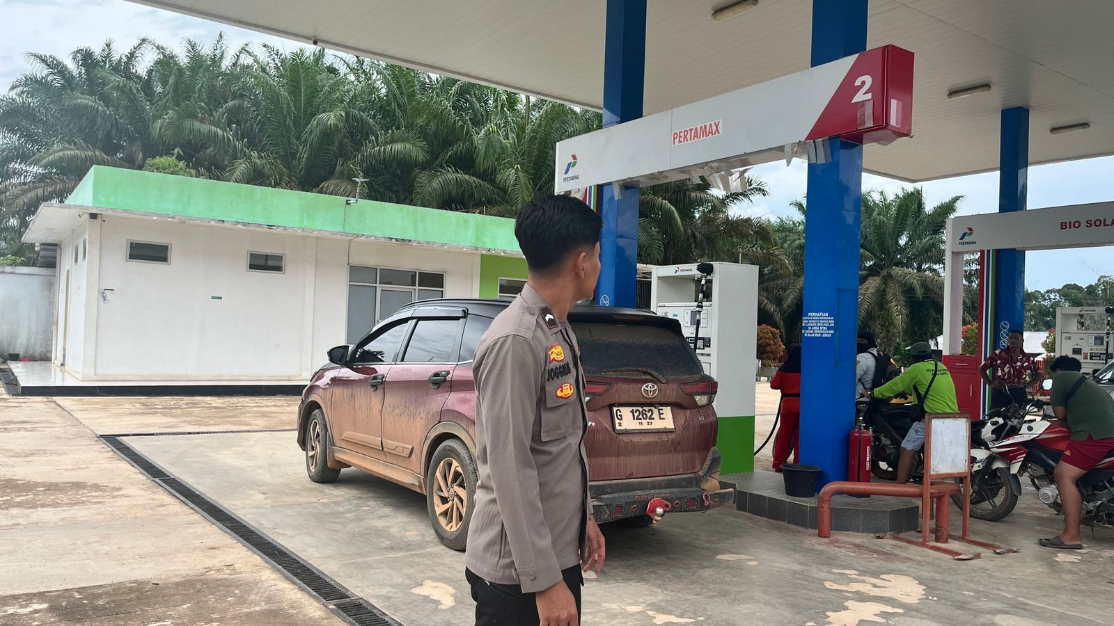 Personel melakukan pengecekan terhadap objek vital SPBU untuk memastikan keamanan, ketertiban, serta ketersediaan Bahan Bakar Minyak (BBM) di wilayah hukum Polsubsektor Batu Ampar.