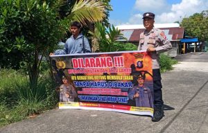 Bentang Sepanduk Larangan Membakar Hutan Dan Lahan Personil Polsek Kapuas Murung Melalui Giat Sosialisasi Karhutla