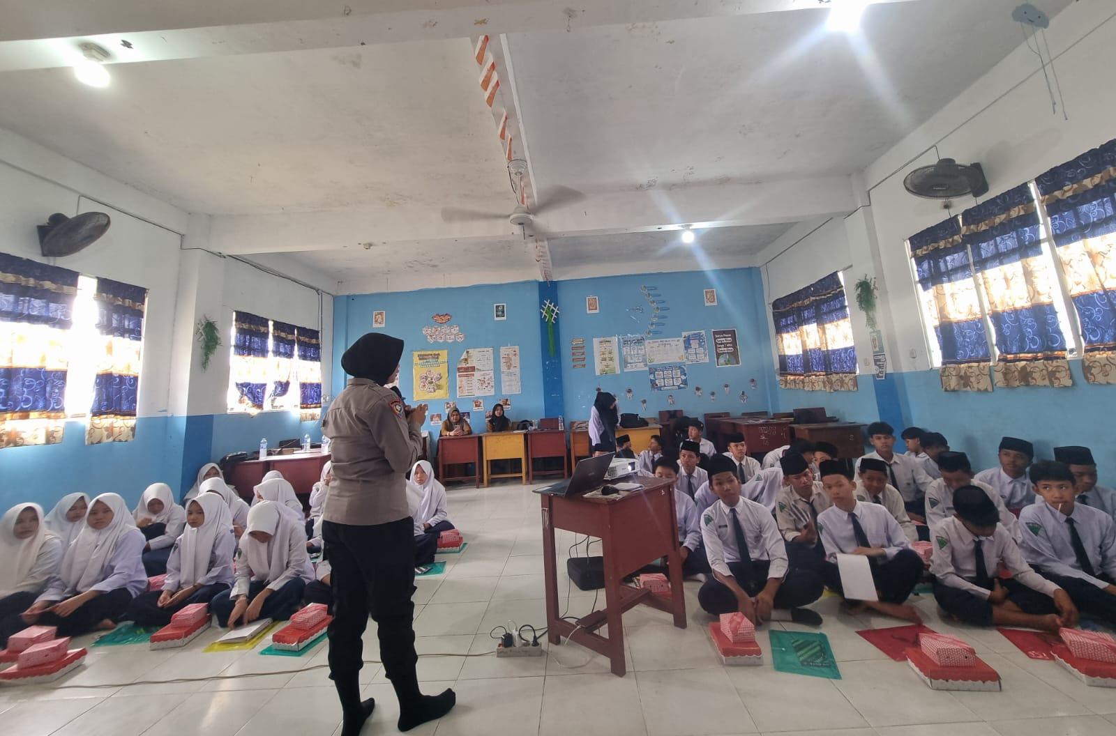 Adapun materi yang disampaikan oleh Bripka Rati mencakup peningkatan kesadaran siswa tentang kenakalan remaja, bahaya narkoba, judi online, tertib lalu lintas, serta pentingnya menjaga keamanan dan ketertiban di lingkungan sekolah dan masyarakat.