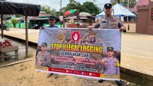“Melalui spanduk ini, kami mengajak masyarakat untuk tidak melakukan pembalakan liar sesuai Pasal 83 ayat (1) huruf B Jo, Pasal 12 huruf e UU RI no. 18 tahun 2013 tentang pencegahan dan pemberantasan perusakan hutan, dengan ancaman 5 tahun penjara dan denda Rp500.000.000 (lima ratus juta rupiah),” terangnya.