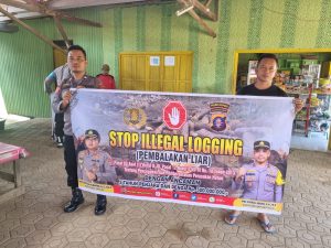 Tribratanews.kalteng.polri.go.id-Kapuas Hulu-Personel Polsek Kapuas Hulu, Polres Kapuas, Polda Kalteng Aiptu Karyadi dan Brigpol Beni. S, S.H., sosialisasi terkait illegal logging sekaligus bahaya perambahan hutan di wilayah Desa Sei Hanyo Kecamatan Kapuas Hulu Kab. Kapuas Prov. Kalteng, Kamis (23/04/2026) 08.45 WIB.