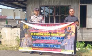 Bentang Sepanduk Larangan Membakar Hutan Dan Lahan Personil Polsek Kapuas Murung Melalui Giat Sosialisasi Karhutla