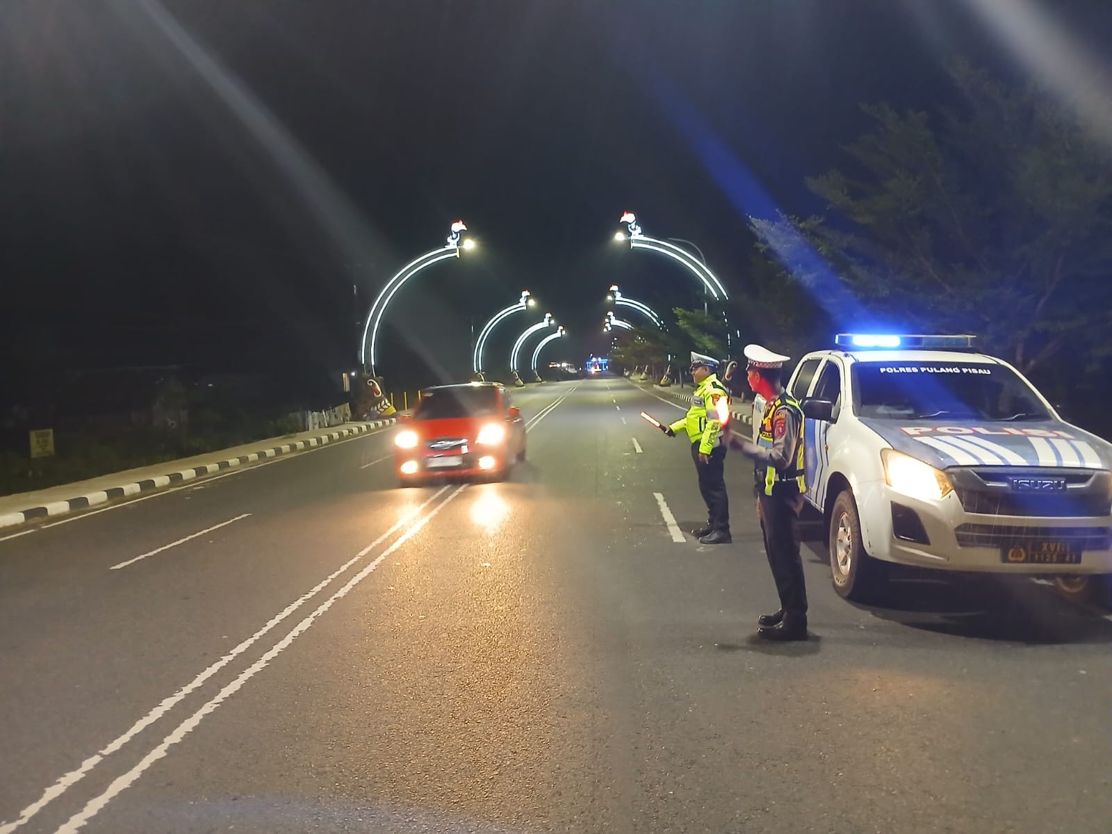 Pulang Pisau – Satuan Lalu Lintas (Satlantas) Polres Pulang Pisau terus mengintensifkan pengawasan di titik-titik rawan kecelakaan melalui kegiatan Patroli Blue Light. Petugas menyisir sejumlah ruas jalan utama di Kecamatan Kahayan Hilir guna memastikan keamanan dan ketertiban lalu lintas (Kamseltibcarlantas). Jumat (24/4/2026) malam.
