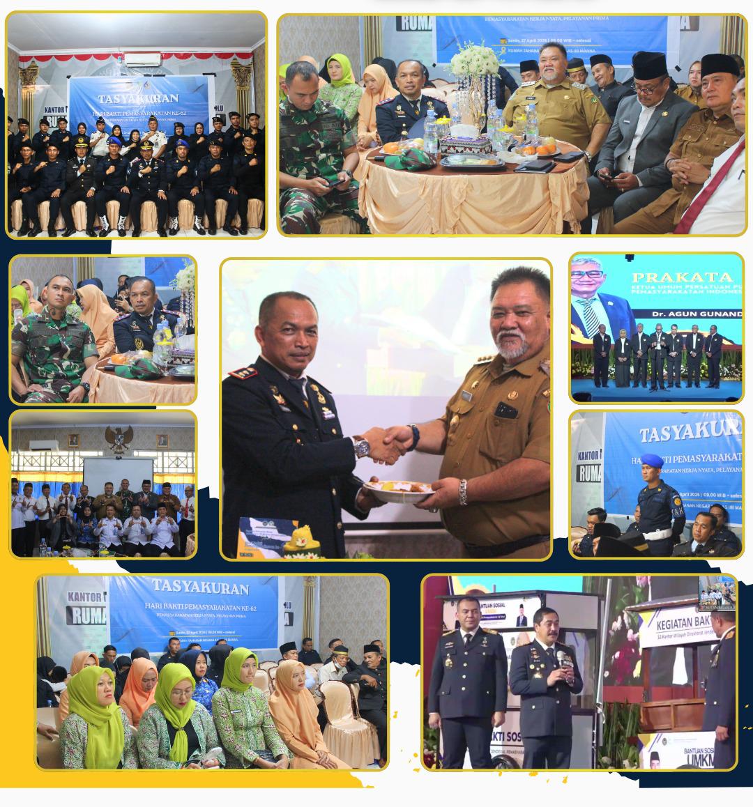 Rangkaian tasyakuran diawali dengan pembukaan oleh MC, menyanyikan lagu Indonesia Raya, sambutan Menteri Imigrasi dan Pemasyarakatan, serta arahan Direktur Jenderal Pemasyarakatan. Dalam arahannya, Dirjenpas menyampaikan refleksi 62 tahun Pemasyarakatan serta penguatan komitmen mewujudkan Pemasyarakatan PASTI dan Berdampak.