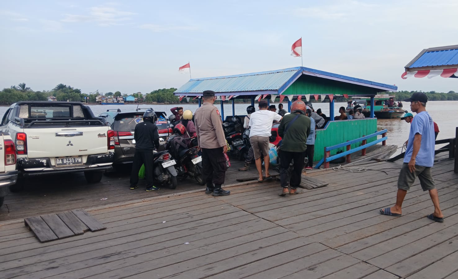 Patroli Ke Ferry Penyebrangan Saka Mangkahai Personil Polsek Kapuas Barat Himbau Agar Masyarakat Hati-Hati Saat Menyeberang